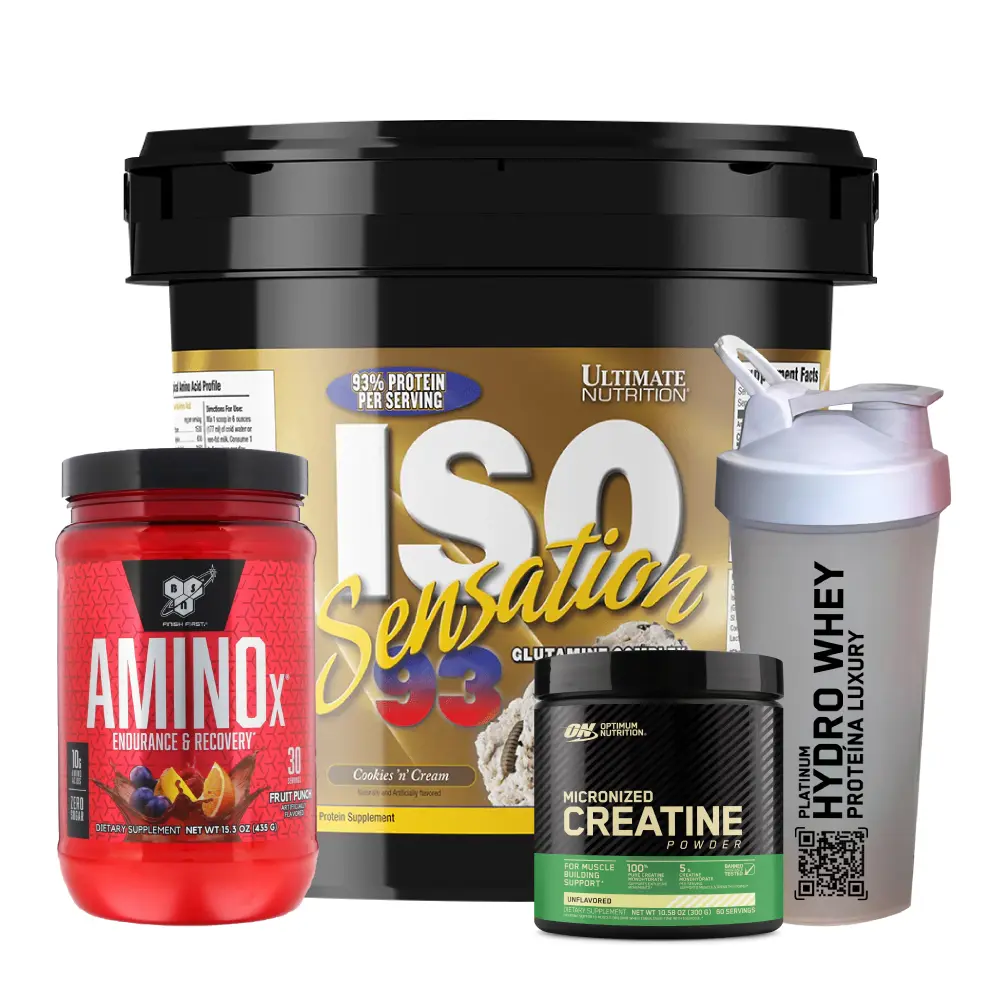 ISO Sensation 5 lb + Creatina Optimum 300 gr + Amino X 30 serv + Shaker