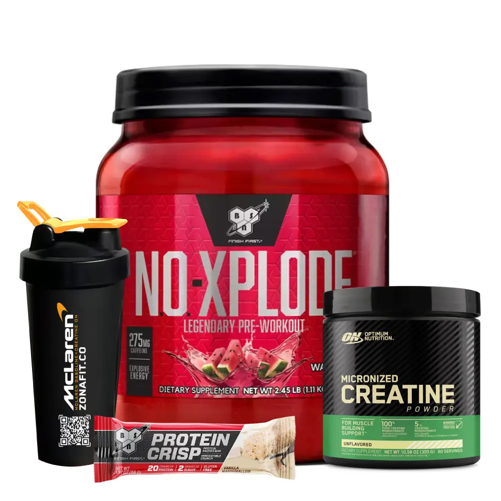 NO Xplode 60 serv + Creatina Optimum 300 gr + Barra de proteína + Shaker